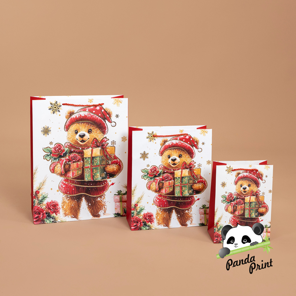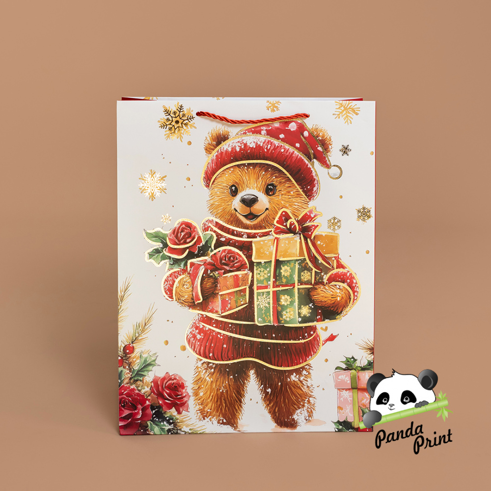 Пакет подарочный 26х10х32 см, 210 гр, Новогодний мишка, дизайн №4 (арт.6233887)