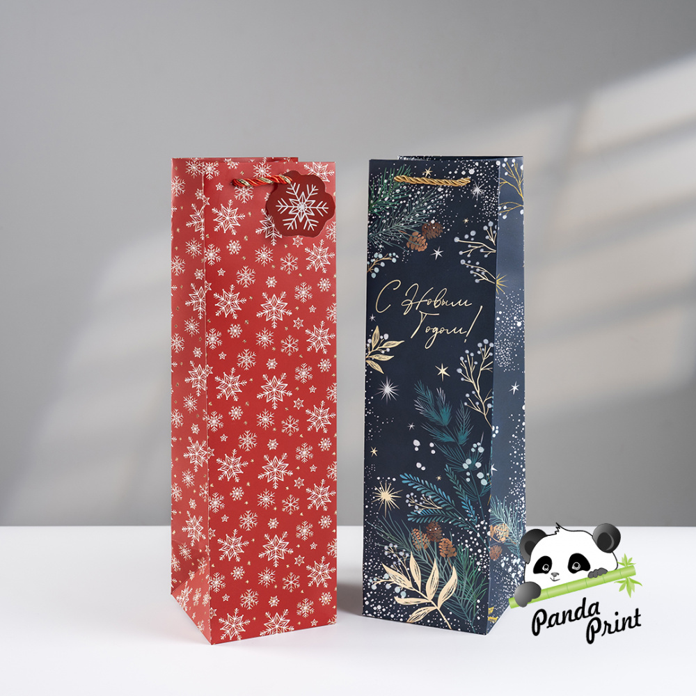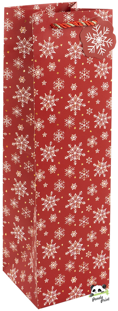 Пакет подарочный для вина 11х11х38 см, 210гр, Новогодние снежинки, металлик (арт.504505)