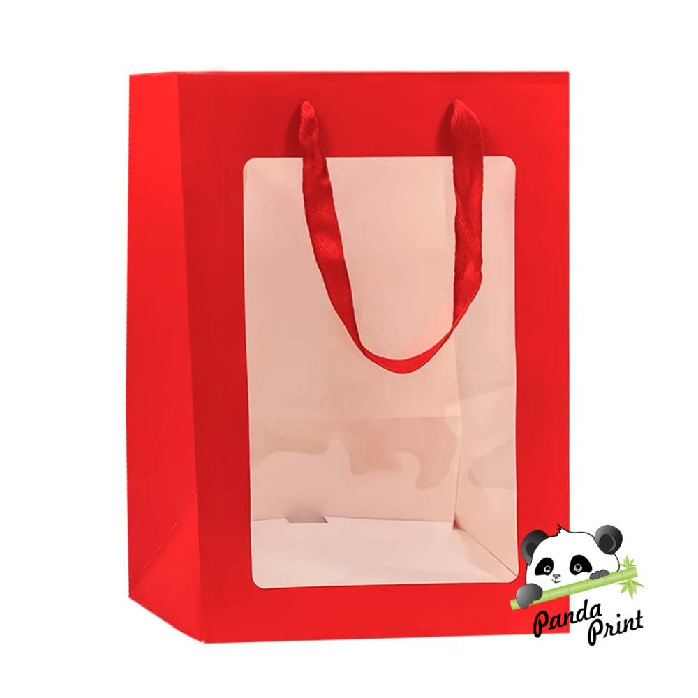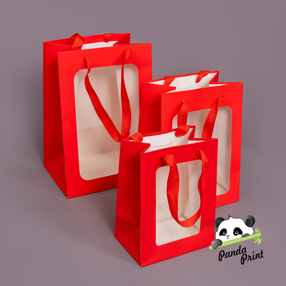 Пакет подарочный с прозрачным окошком 20х16х30 см красный