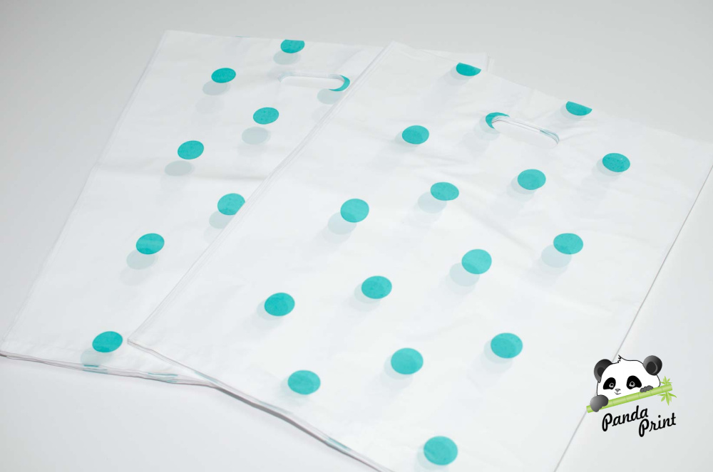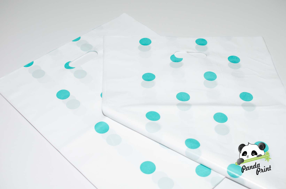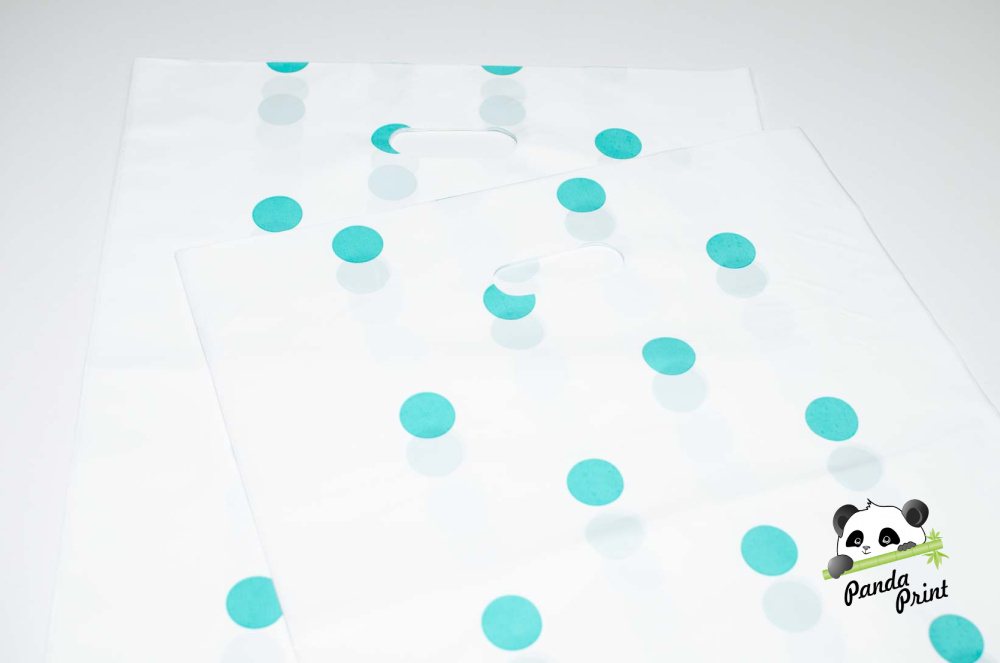 Пакет ПНД с вырубной ручкой 400х500 мм белый Горошек зеленый
