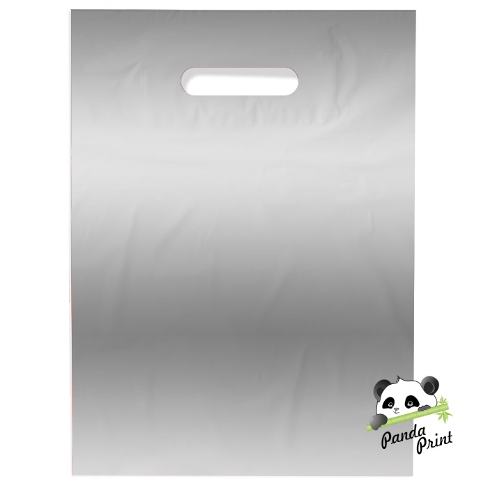 Пакет ПВД с вырубной ручкой 300х400+30 мм с донной складкой, серебро