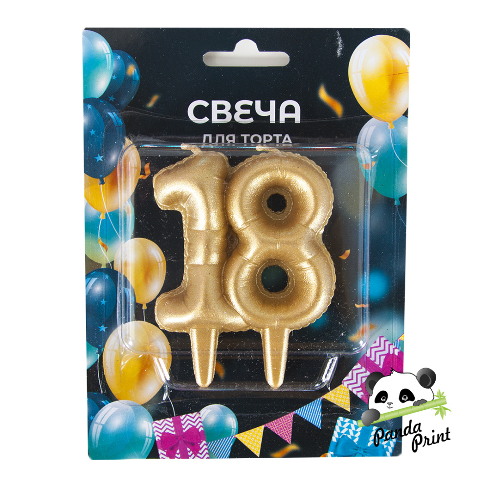 Свеча Цифра 18, Юбилейные шарики, золото, 8 см