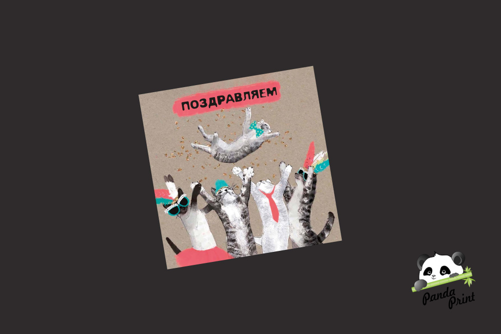Открытка 80х80 мм Поздравляем Коты