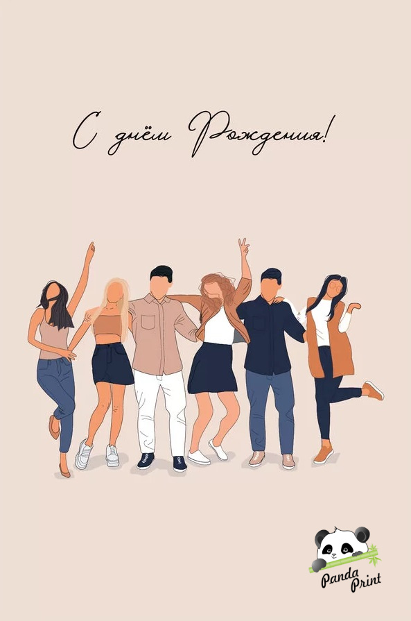 Открытка 100х150 мм (500.50) С Днем Рождения! (компания друзей)
