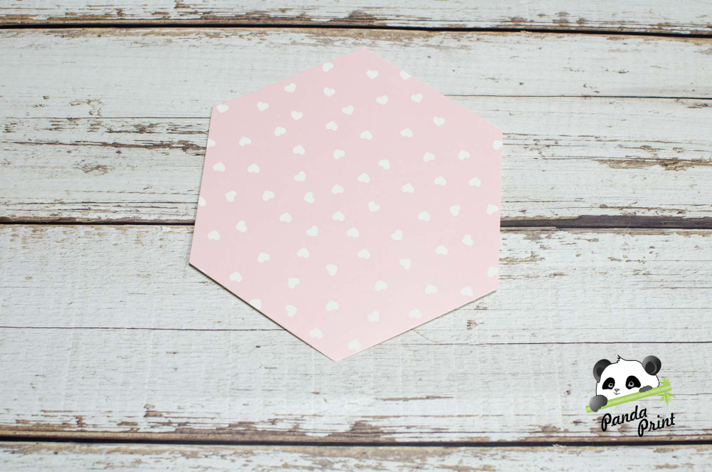 Бирка 150х150 мм шестиугольная Сердечки белые на розовом