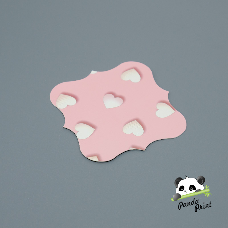 Бирка 83х83 мм фигурная 3D сердечки белые на розовом