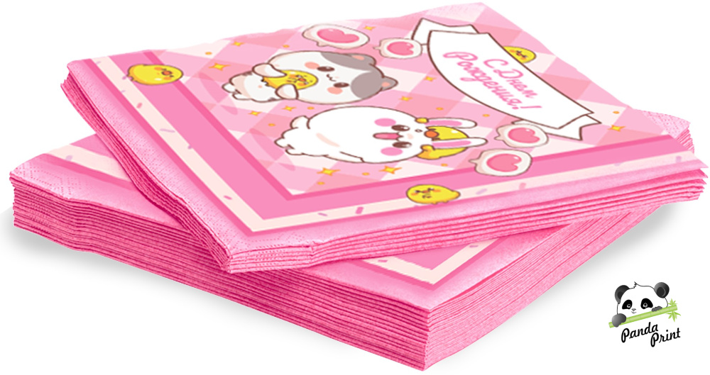 Салфетки Кавайные зверюшки, розовый 33х33 см, 20 шт (арт.6015018)