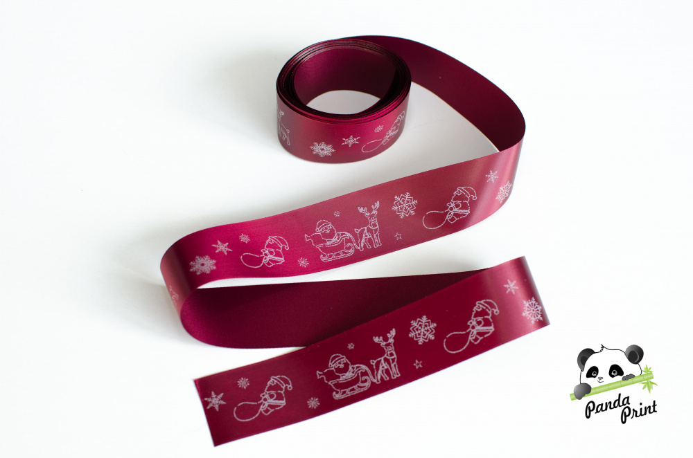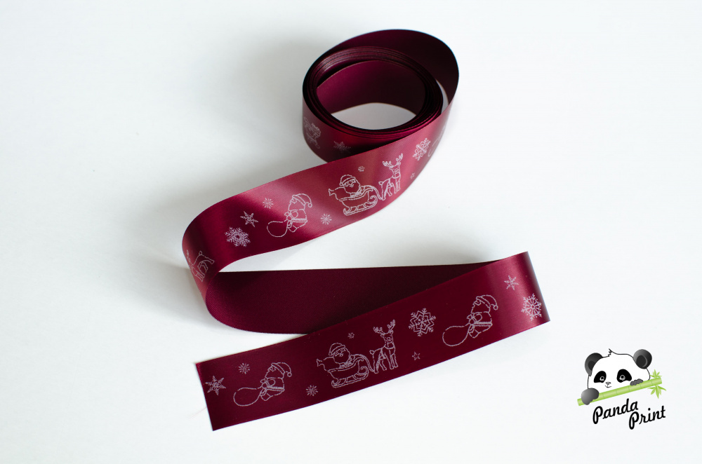 Сатиновая лента 3 см новог.рис. Олень 5м, бордо