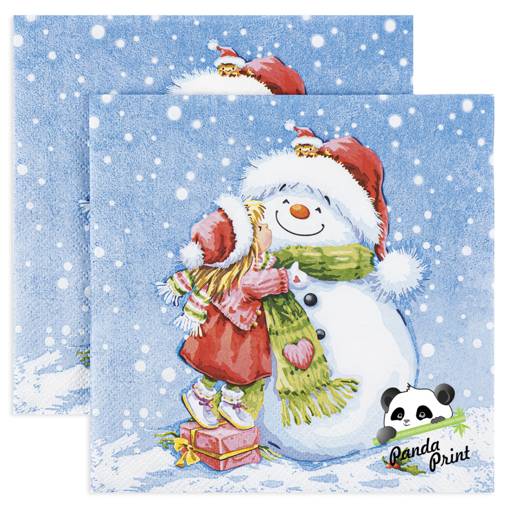 Салфетки Снеговик и девочка, голубой 33х33 см, 20 шт (арт.37493)