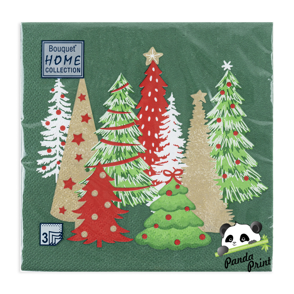 Салфетки Яркие елочки, зеленый, 33х33 см, 20 шт (арт.37157)