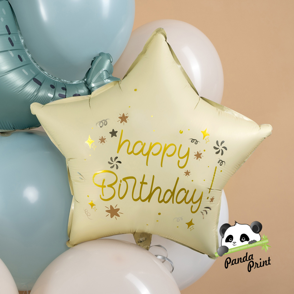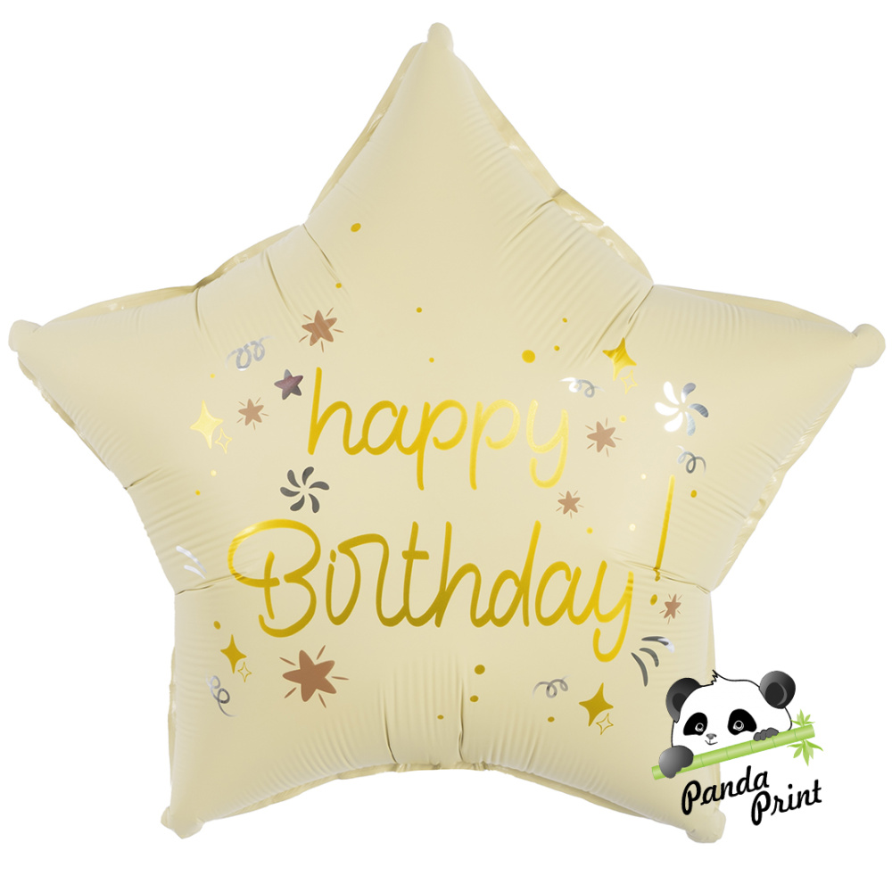 Шар фольгированный (18''/46 см) Звезда, Happy Birthday (праздничные искры), кремовый, сатин (арт.24841P)