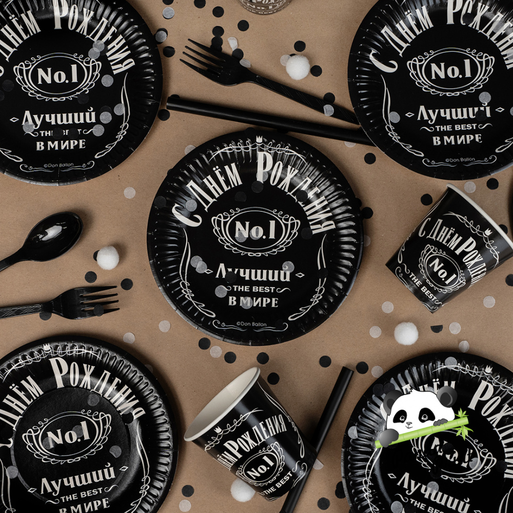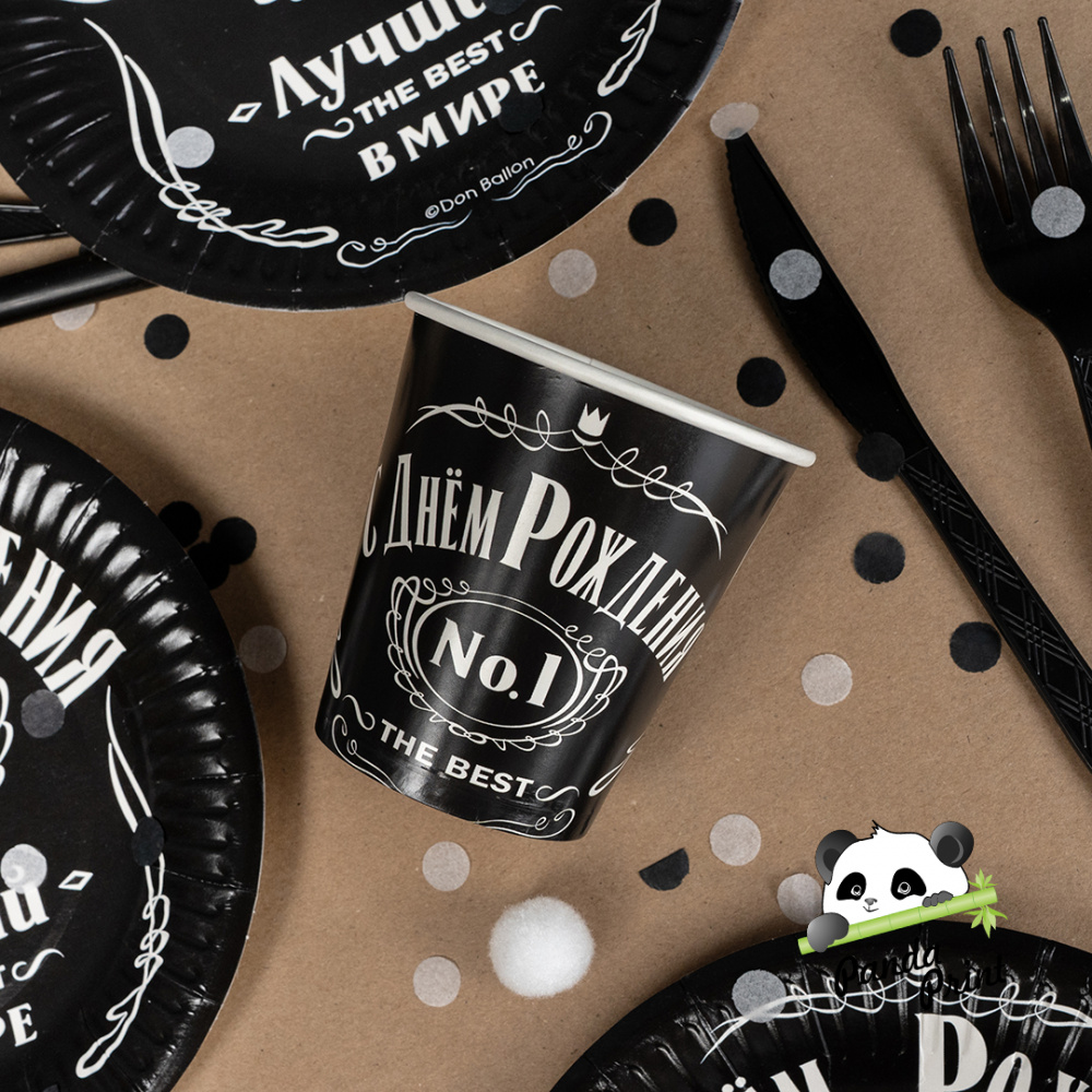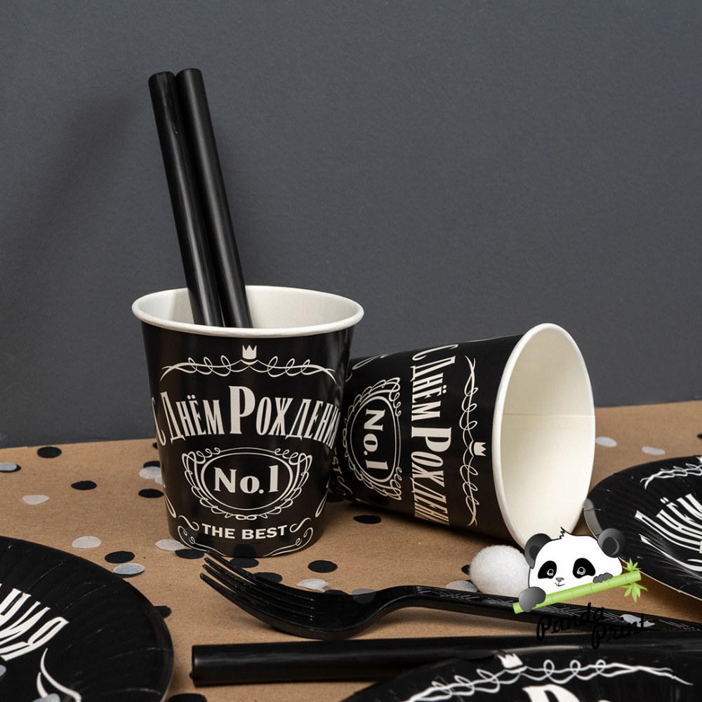 Стакан бум. 250 мл Лучший в мире, №1, черный, 6 шт (арт.77565)