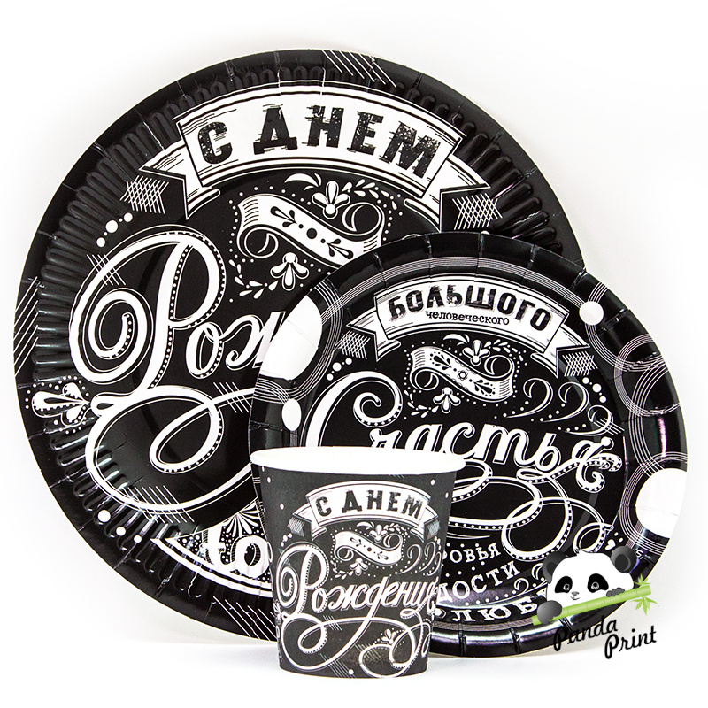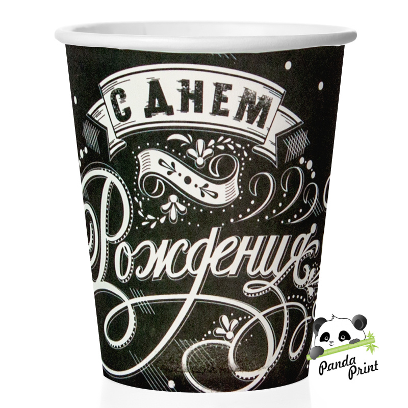 Стакан бум. 250 мл С Днем Рождения (винтажный узор), 6 шт (арт.77250)