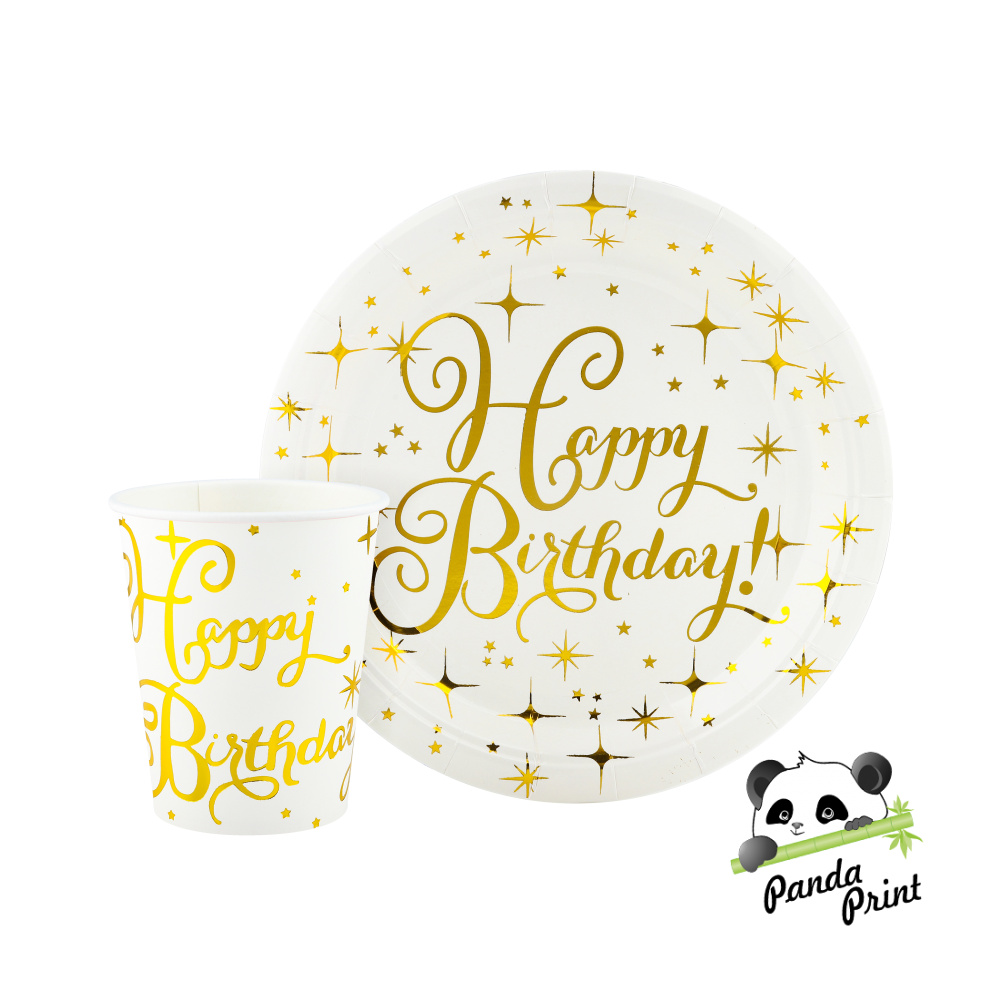 Стакан бум. 250 мл Волшебный ДР, белый/золото, металлик, 6 шт (арт.6231426)