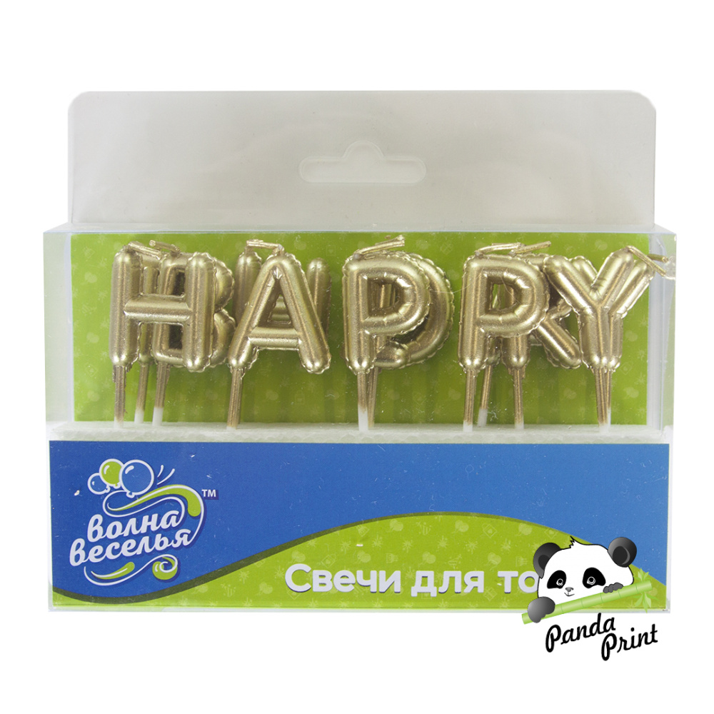 Свечи Буквы Happy Birthday, золото, металлик, 6 см (арт.629244G)