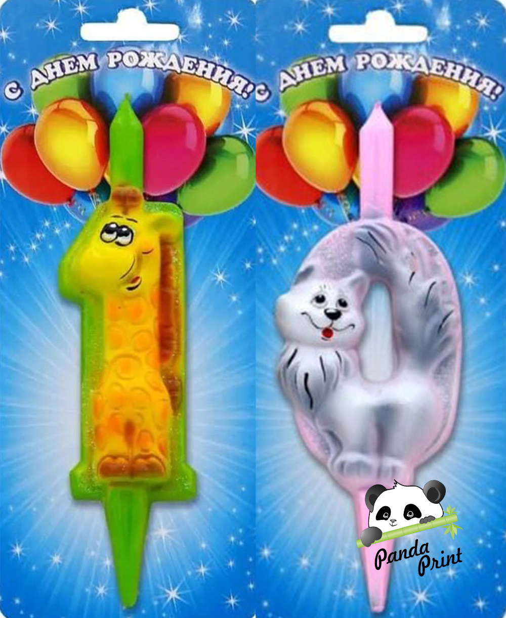 Свеча Цифра 0 Котенок + 1 Жираф, 9 см, 2 шт