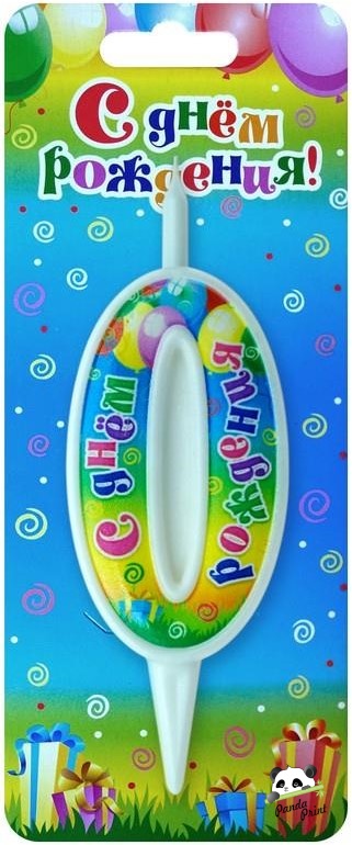 Свеча Цифра 0, С Днем Рождения, 12 см