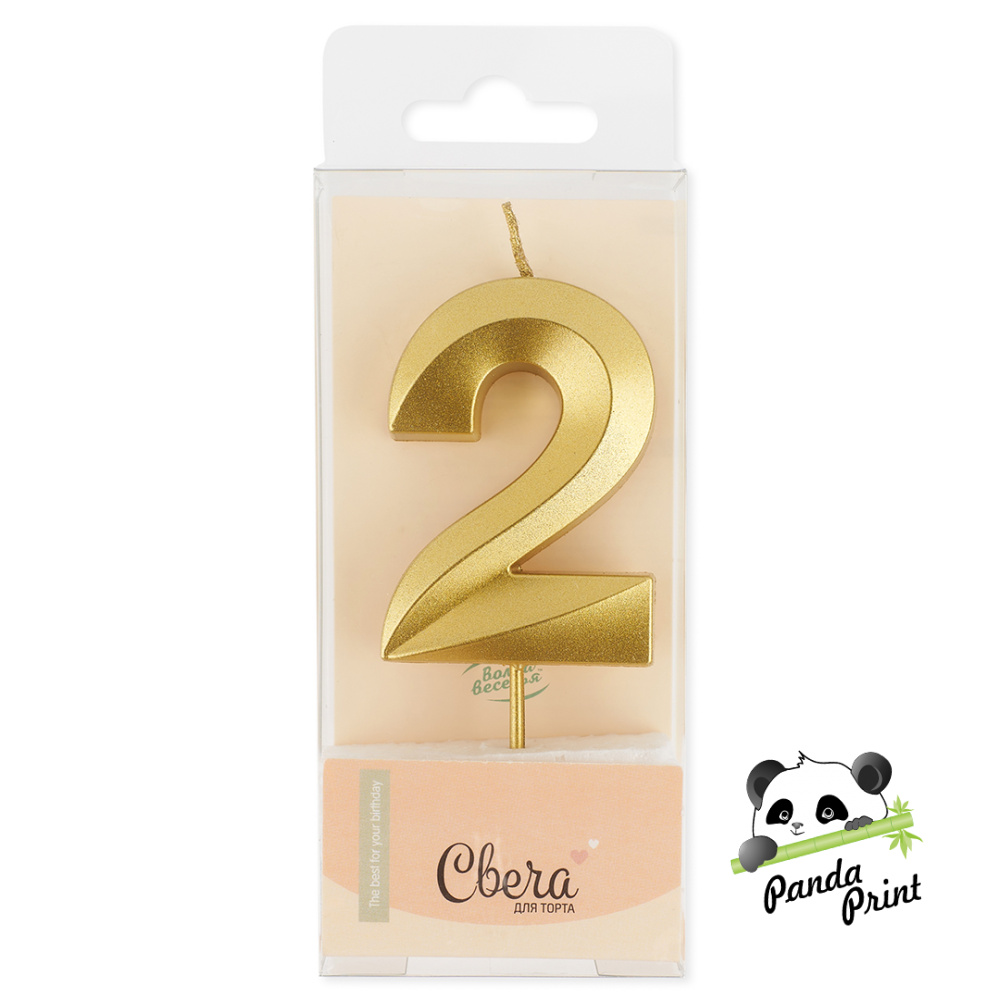 Свеча Цифра 2, Грани, золото, металлик, 4,2х6 + 4,5 см
