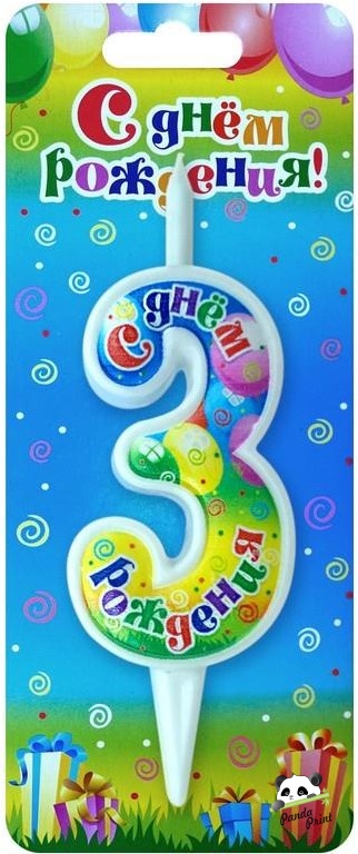 Свеча Цифра 3, С Днем Рождения, 12 см