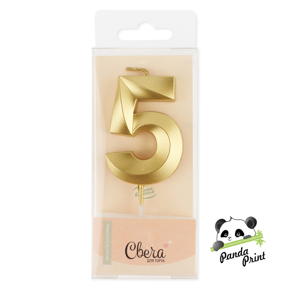 Свеча Цифра 5, Грани, золото, металлик, 4,2х6 + 4,5 см
