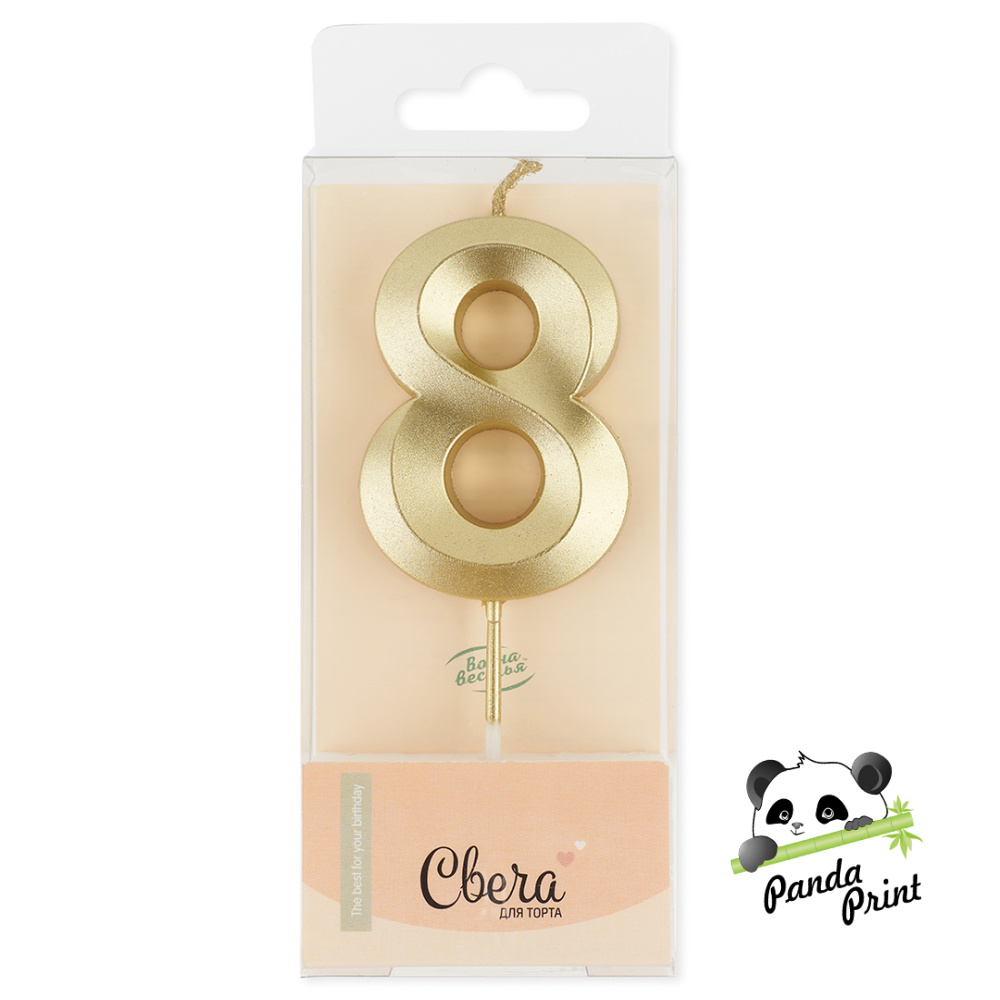 Свеча Цифра 8, Грани, золото, металлик, 4,2х6 + 4,5 см