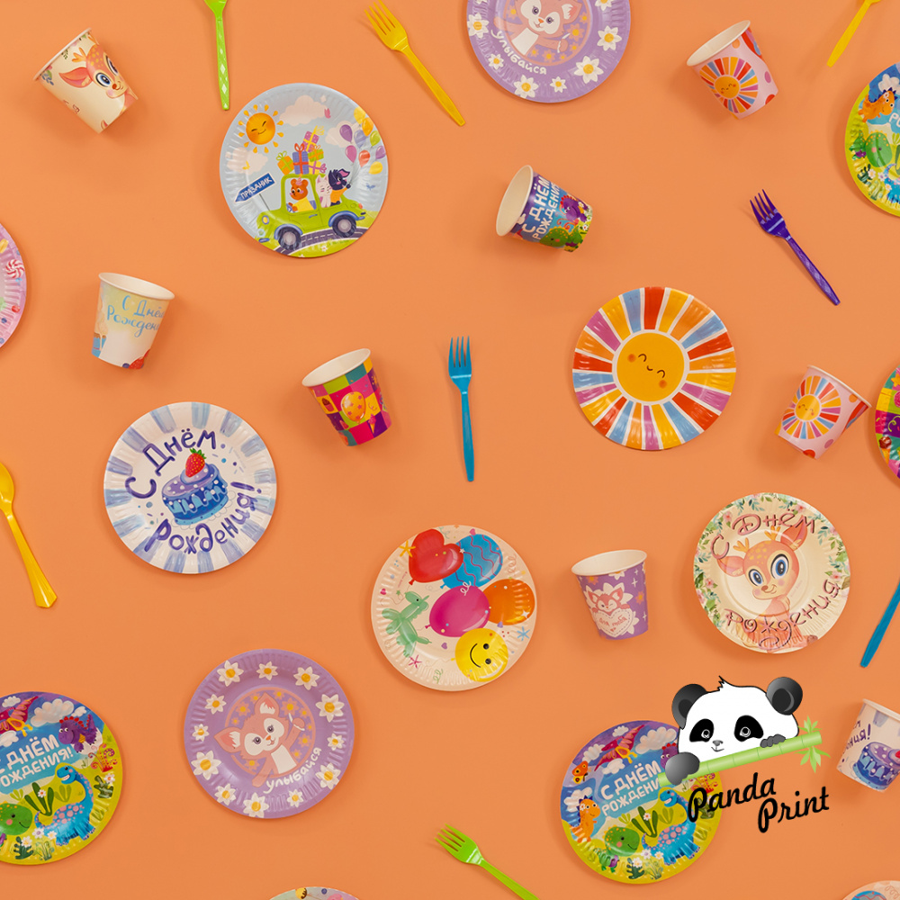 Бумажная тарелка диаметром 180 мм с рисунком. Можно использовать как для холодных, так и для горячих блюд.
