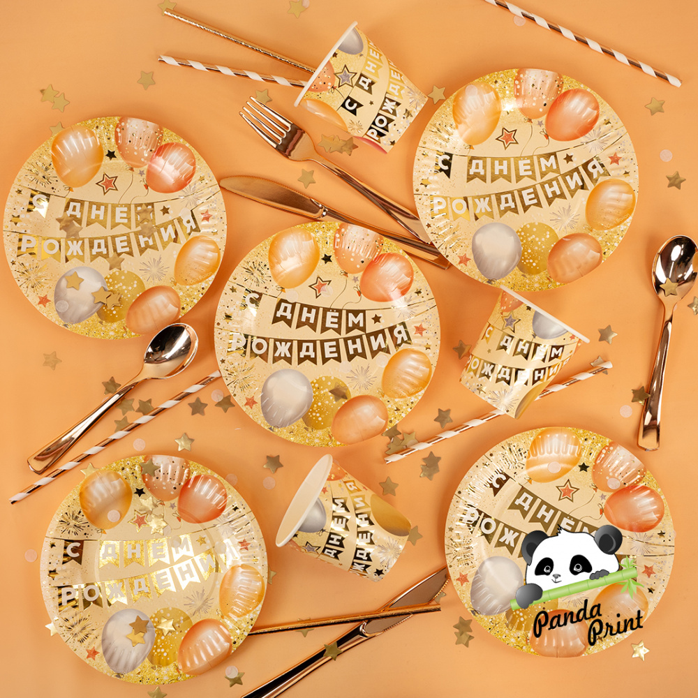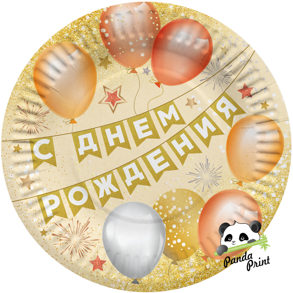 Тарелка 180 мм С Днем Рождения (флажки), металлик, 6 шт (арт.77560)
