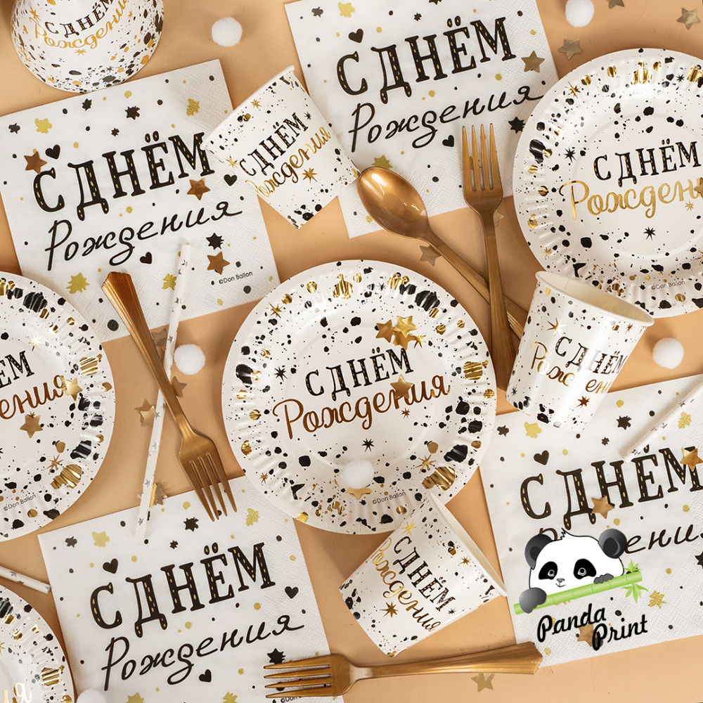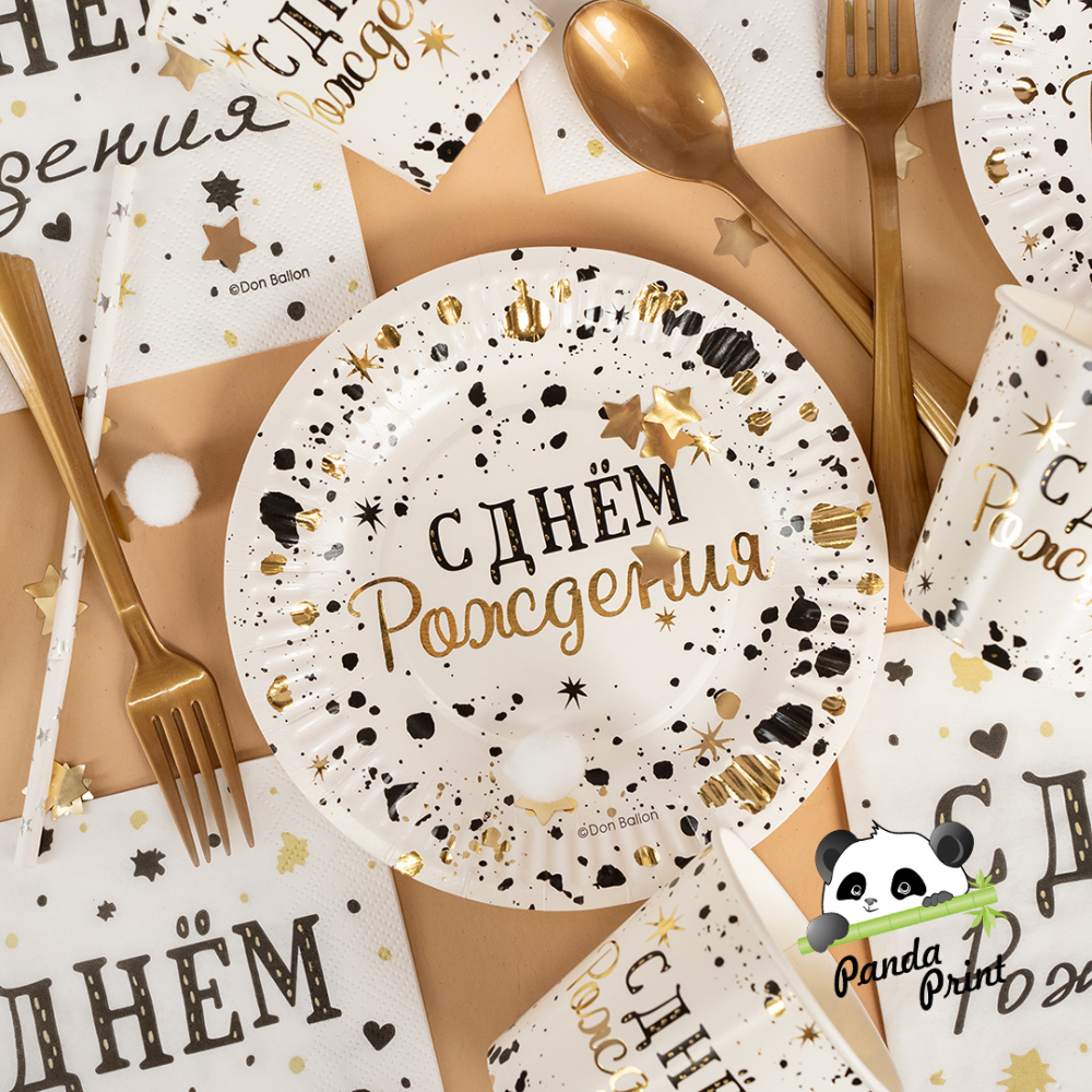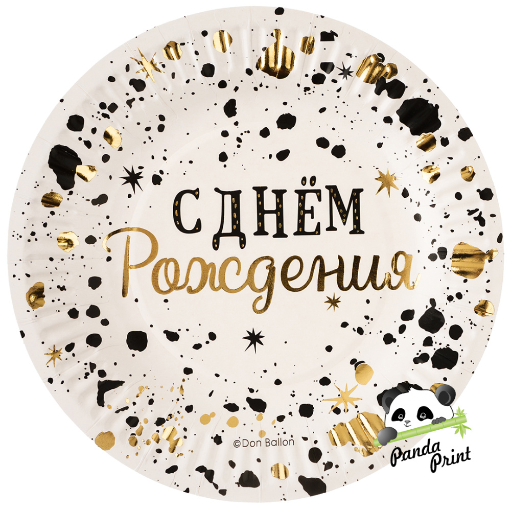 Тарелка 180 мм С Днем Рождения, Изысканный стиль, металлик, 6 шт (арт.77558)