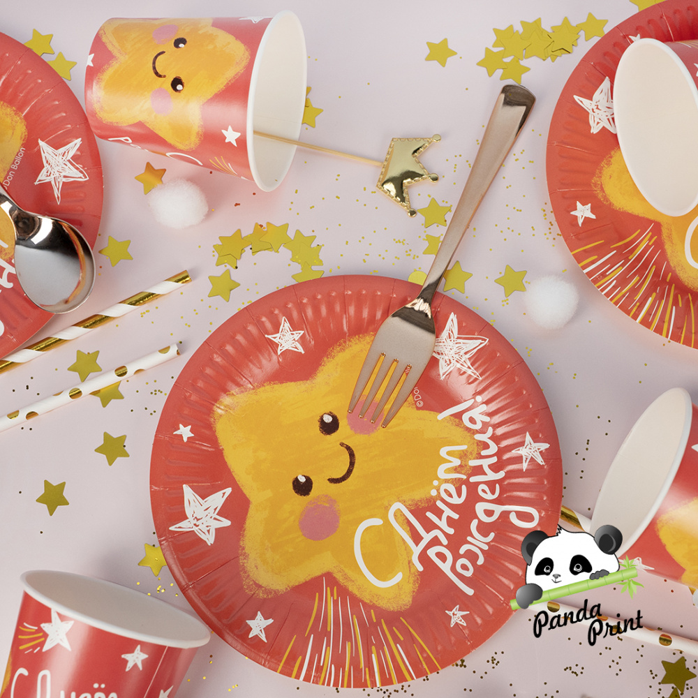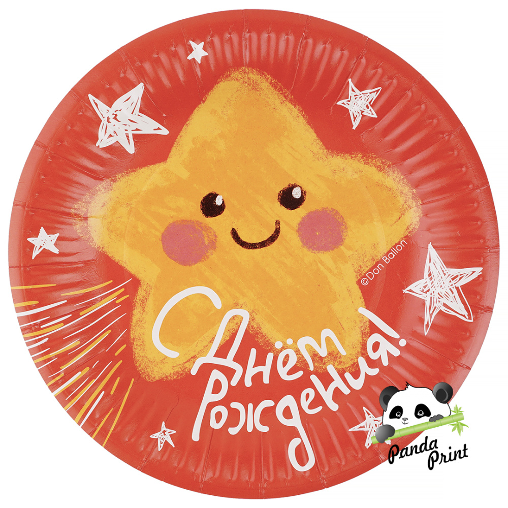 Тарелка 180 мм С Днем Рождения (звездочка), 6 шт (арт.77488)