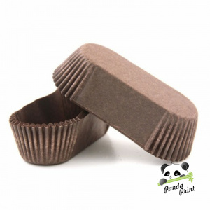 Тарталетки бумажные коричневые в форме овала. У основания 136 мм, ширина дна 35 мм, высота 26,5 мм.