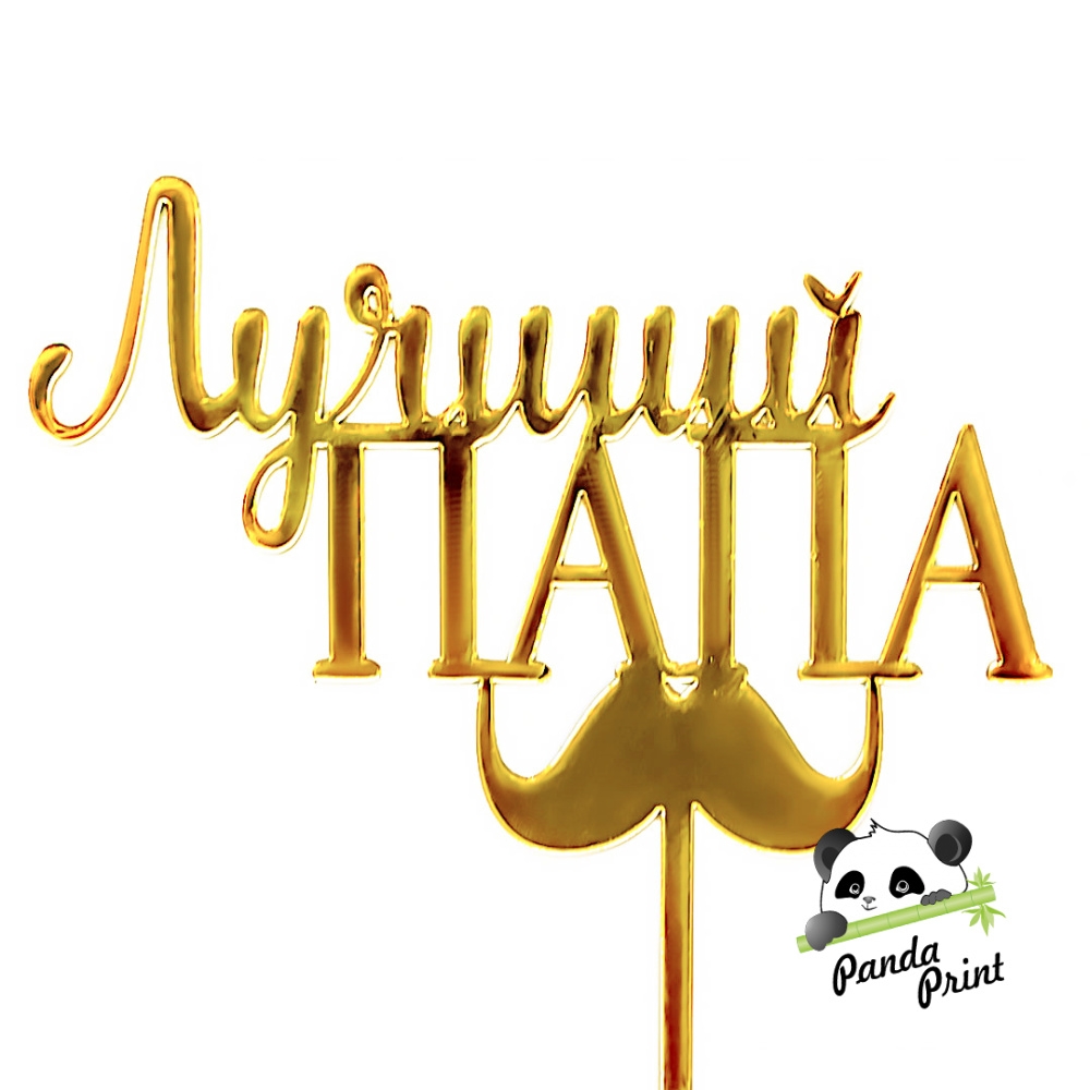 Топпер Лучший папа (усы), золото, металлик, 12х16 см (арт.615161)
