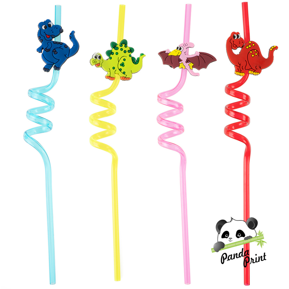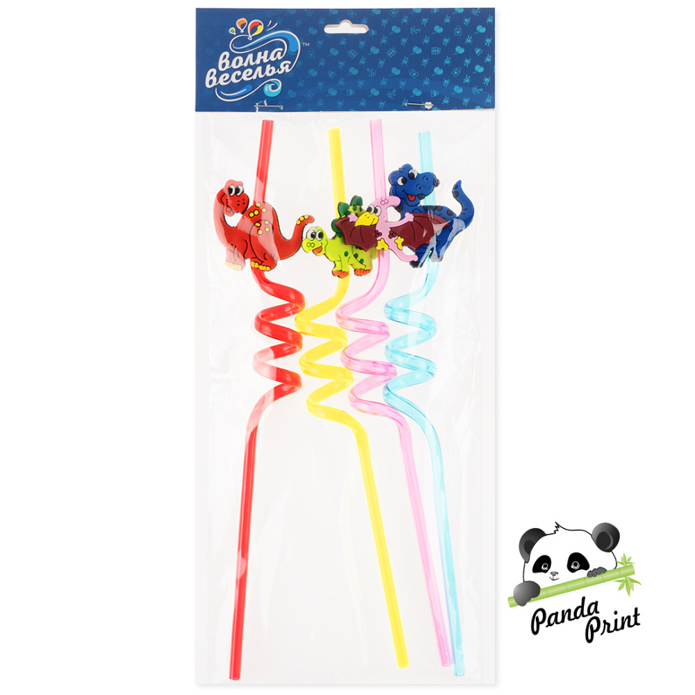 Трубочки для коктейлей (пластик) Динозаврики, ассорти, 4 шт (арт.6231321)