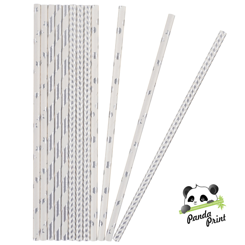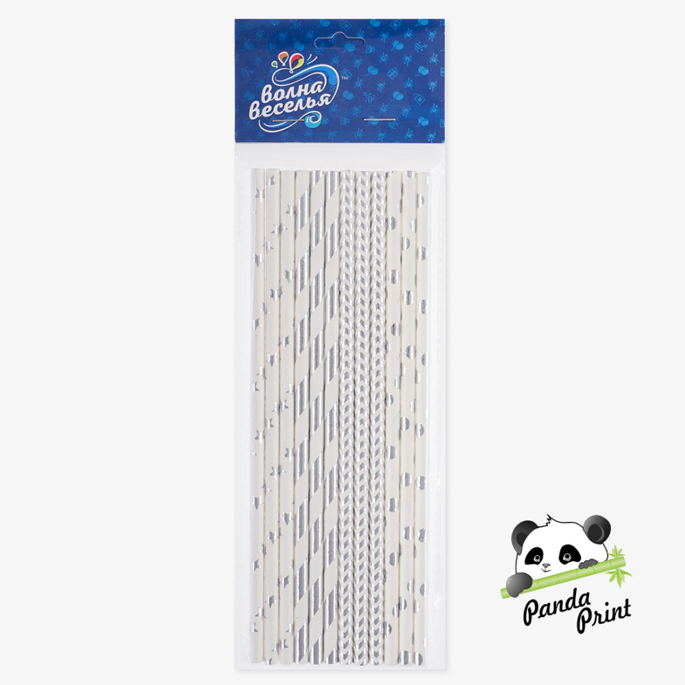 Трубочки для коктейлей Серебристый микс, белый/серебро, металлик, 12 шт (арт.6231317)