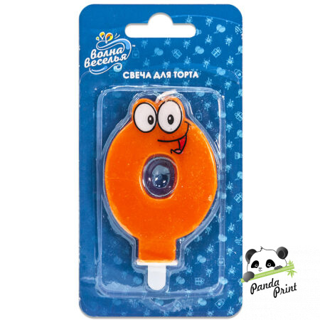 Свеча Цифра 0, Глазки, оранжевая, 7,5 см