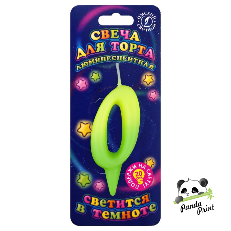 Свеча Цифра 0, Люминесцентная, флуор, 8 см