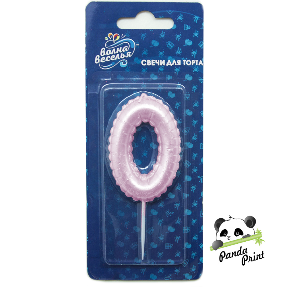Свеча Цифра 0, Воздушный шарик, розовый, перламутр, 5,8 см