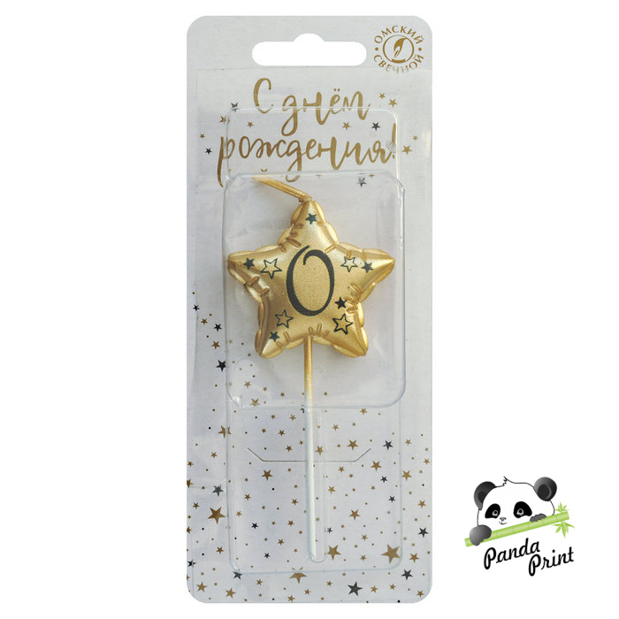 Свеча Цифра 0, Звезда, золото, металлик, 9 см