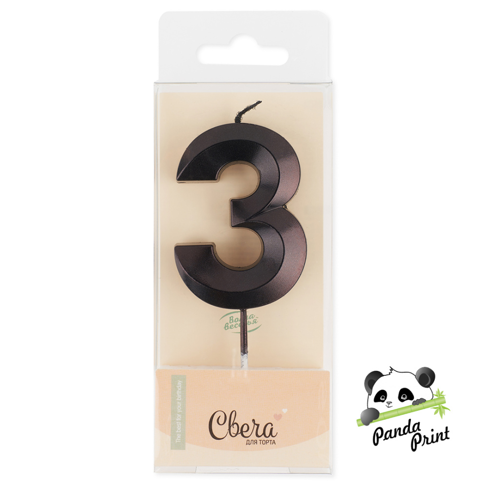 Свеча Цифра 3, Грани, черный, металлик, 4,2х6 + 4,5 см