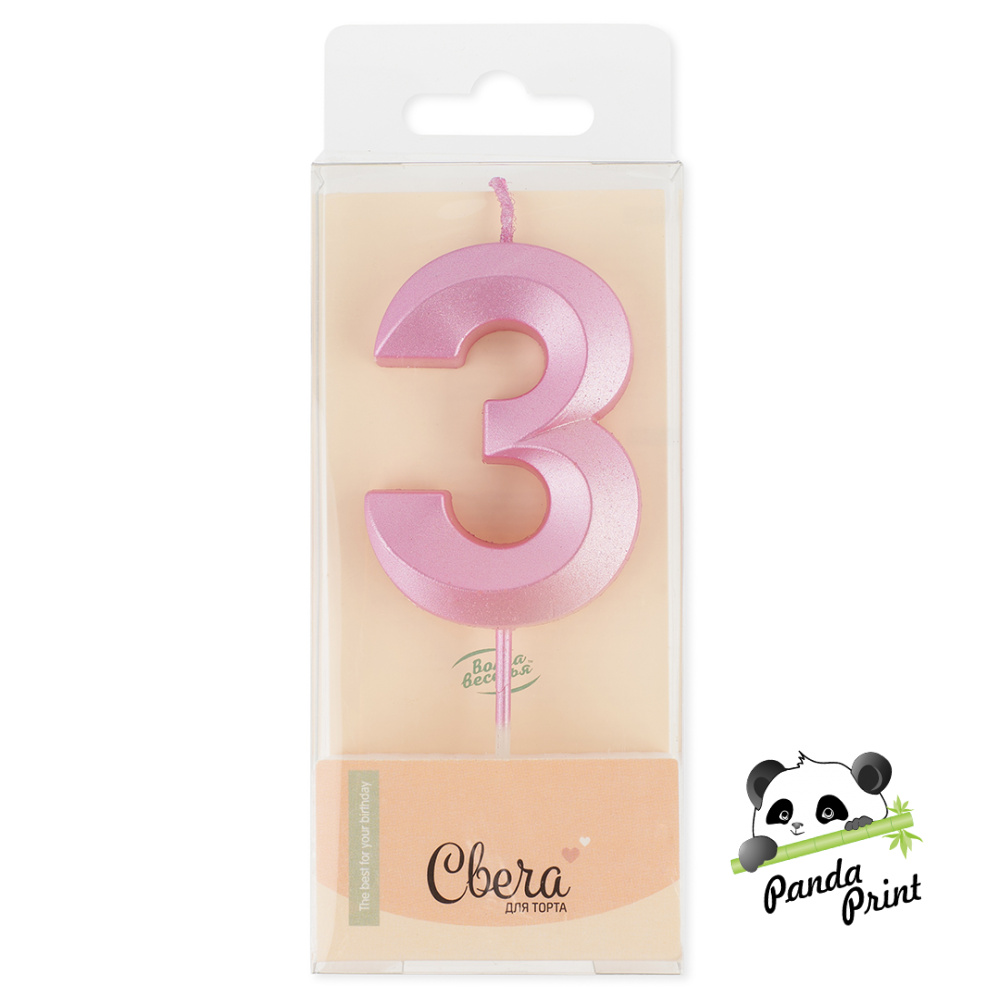 Свеча Цифра 3, Грани, розовый, перламутр, 4,2х6 + 4,5 см