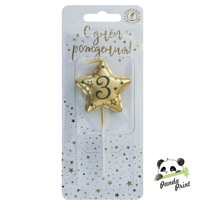 Свеча Цифра 3, Звезда, золото, металлик, 9 см