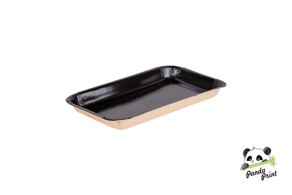 Лоток жиро- и влаго- стойкий,длина 200 мм, ширина 110 мм, высота 20 мм, внутренний слой черный, ламинированный пленкой, не требует сборки.
